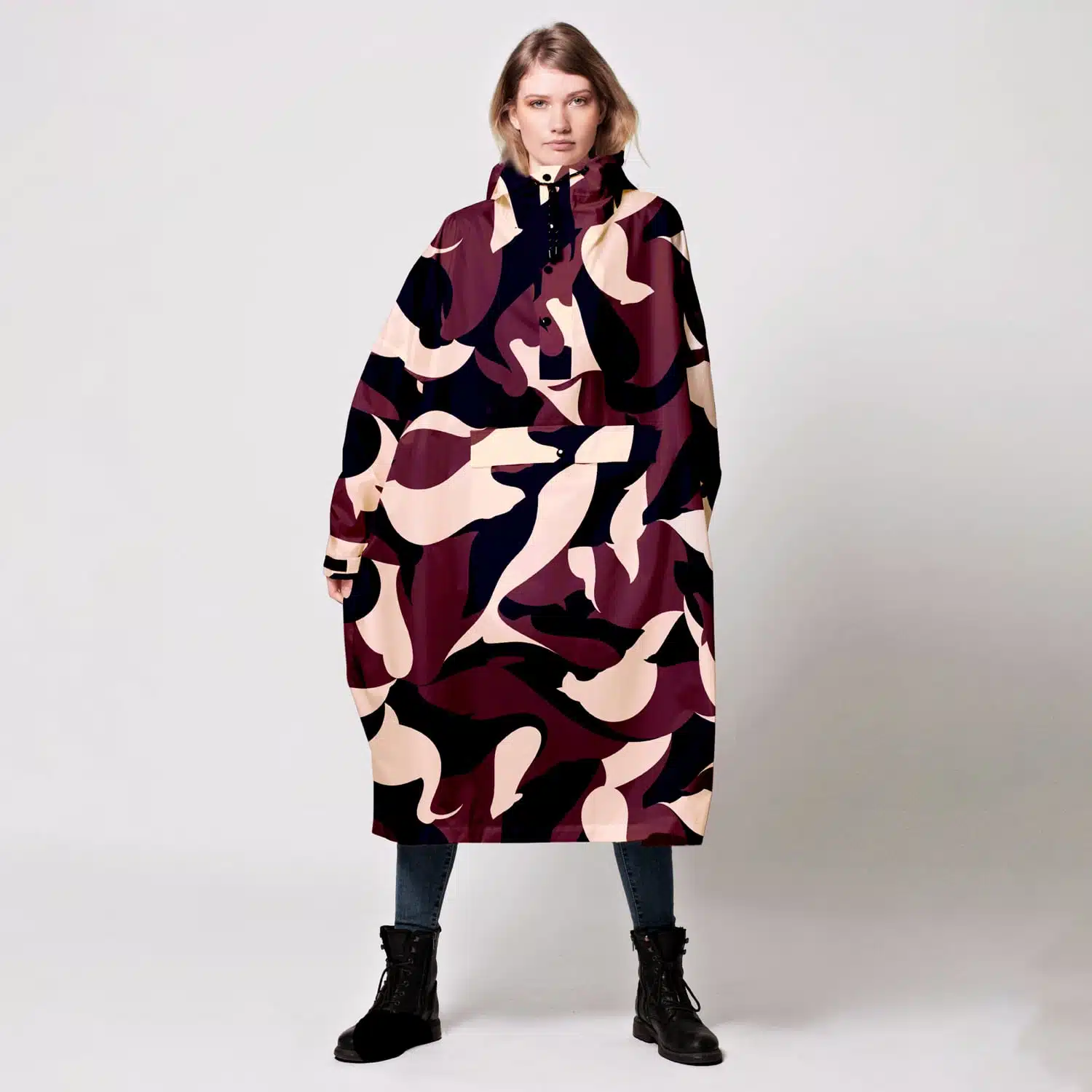 Gehen Sie mit einem Kunstwerk spazieren, mit diesem Regenponcho in bunten Farben, entworfen von Malika Favre. Ein Poncho, der Sie im wahrsten Sinne des Wortes zum Lächeln bringen wird und einfach nur Stil hat. 100% wasserdicht und in einer Einheitsgröße, wird dieser Poncho zu Ihrem Lieblingsponcho. Sie können alles darunter tragen, was Sie wollen, denn er ist eine Einheitsgröße für alle. Sie können also Ihren dicken Pullover auch bei Regen tragen.