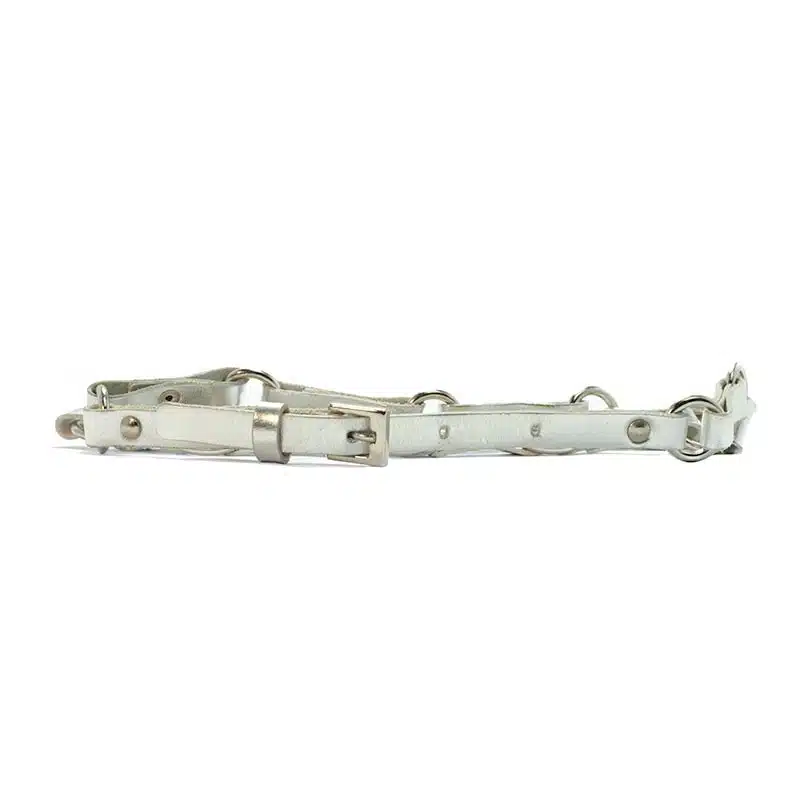 Setzen Sie ein Statement mit unserem Ledergürtel in Silber, der mit auffälligen Ringen verziert ist, und erleben Sie die Verschmelzung von Handwerkskunst und Mode in einem einzigen Accessoire. Erhöhen Sie Ihren Stil mit diesem exquisiten Stück von Yazzy’s Fashion Accessories.