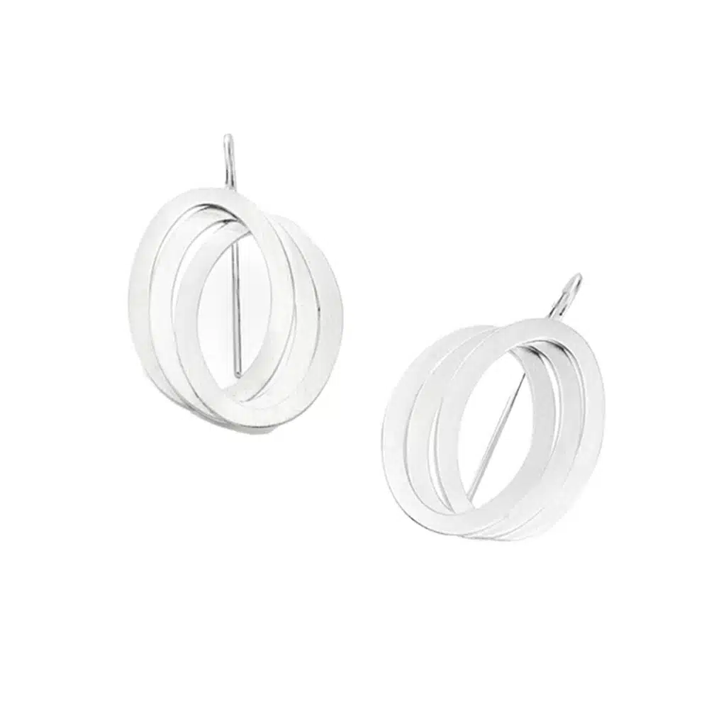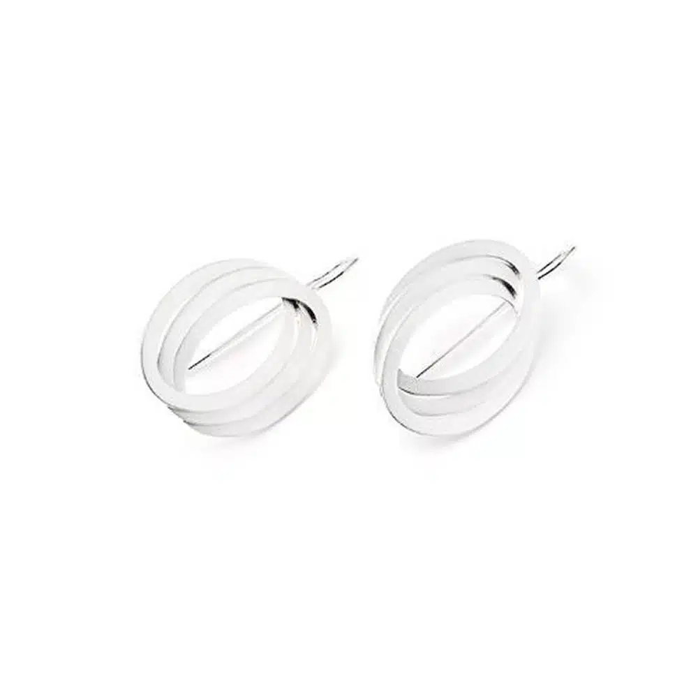 Wenn Sie ein lustiges Design für Ihre Ohrringe mögen, ist dies ein Muss für Sie. Ein Paar Ovale Ohrringe aus Silber .925. Die Ohrringe sind dreifach wegen der 3 Ovale, die ineinander verschlungen aussehen. Dieser Ohrring sieht aus, als wäre er von dem berühmten Niederländische Grafiker M.C. Escher entworfen worden, oder zumindest könnte er von ihm beeinflusst worden sein.