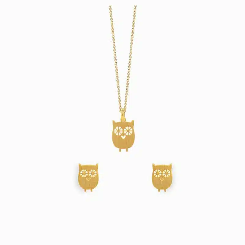 Wenn Sie ein lebenslustiger Tierliebhaber sind, haben wir ein besonderes Angebot für Sie! Unser Eulen Schmuckset besteht aus einer silbernen Eulen Halskette und silbernen Eulen Ohrsteckern mit einer dünnen Goldschicht zu einem Aktionspreis. Dieses Schmuckset ist natürlich aus .925er Silber gefertigt und gut verarbeitet.