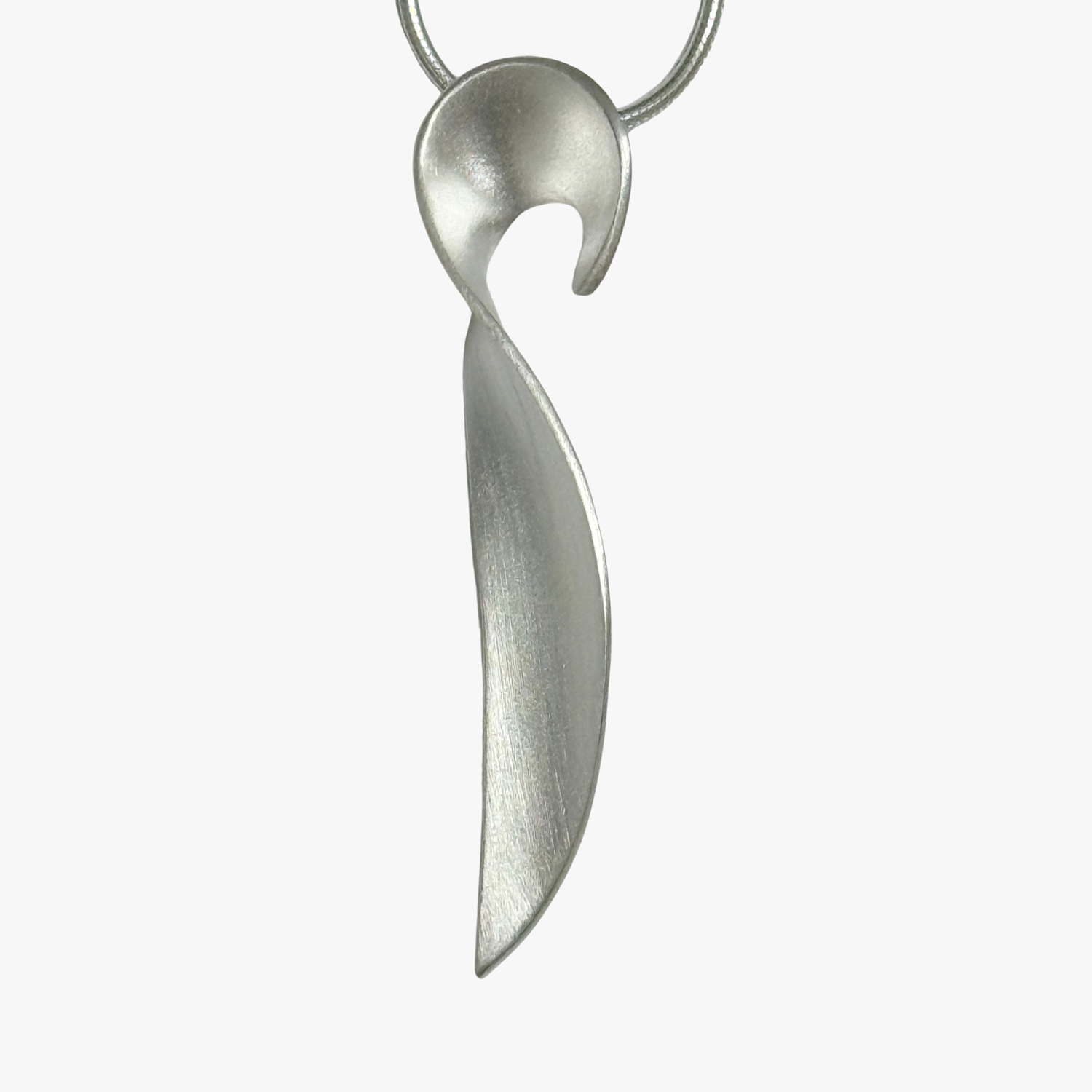 Le Nocturne Quill est fait pour celles qui veulent une présence sans tapage. Fait main en argent sterling mat, le pendentif inspiré d’une plume trace une ligne verticale nette qui allonge la nuque—minimaliste, moderne, volontairement discret. La surface satinée diffuse la lumière au lieu de l’absorber ; les arêtes sont adoucies, la forme est précise, rien ne s’accroche à la maille ou aux cheveux. C’est le genre de pièce qu’on oublie… jusqu’à ce qu’on vous en parle.