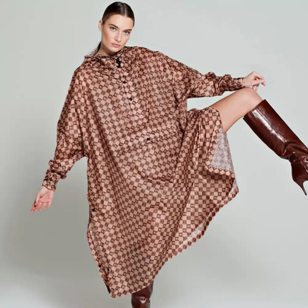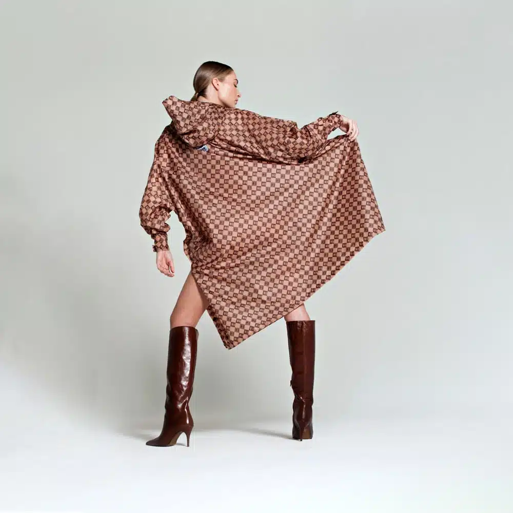 Le poncho de pluie Rainkiss Damier en marron allie sans effort fonction et élégance. Le Poncho de Pluie Damier en Marron est un mélange parfait de fonction et de style. Embrassez chaque averse dans un motif audacieux de damier marron sur marron qui ajoute de la profondeur à n’importe quel look, parfait pour les rues de la ville ou les escapades à la campagne.