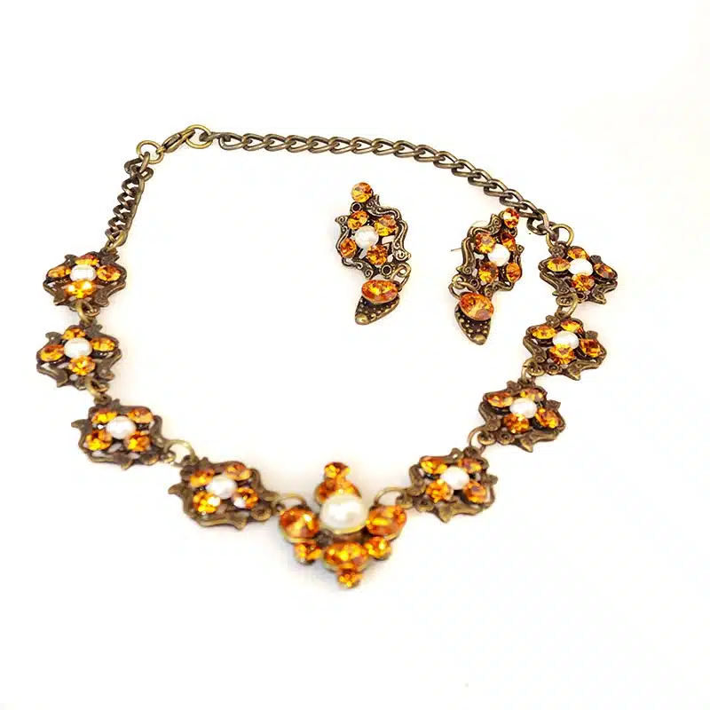 Finished in a luxurious antique/brass gold tone, this Swarovski pearl and crystal set radiates vintage allure with a modern twist. Whether worn for a bridal moment or a special occasion, it will elevate your outfit with effortless sophistication.