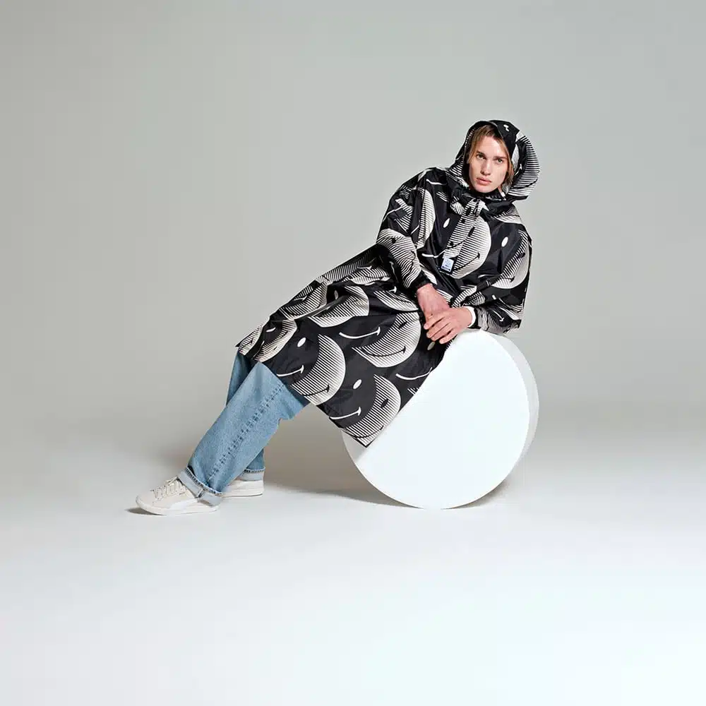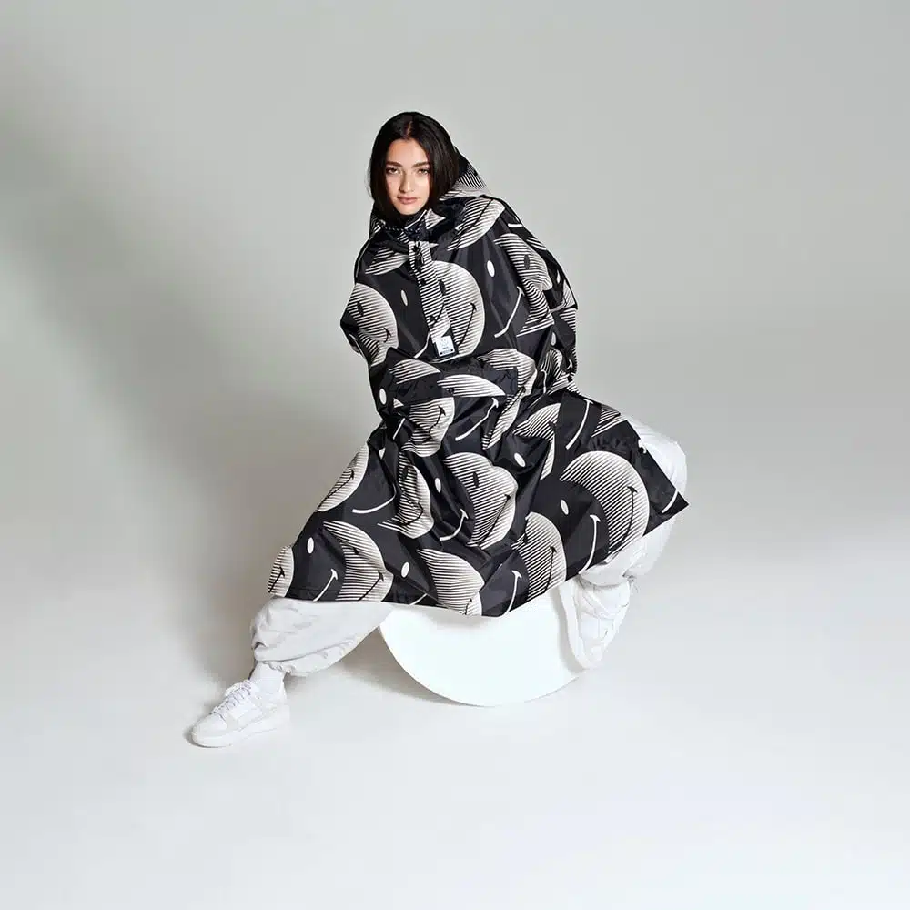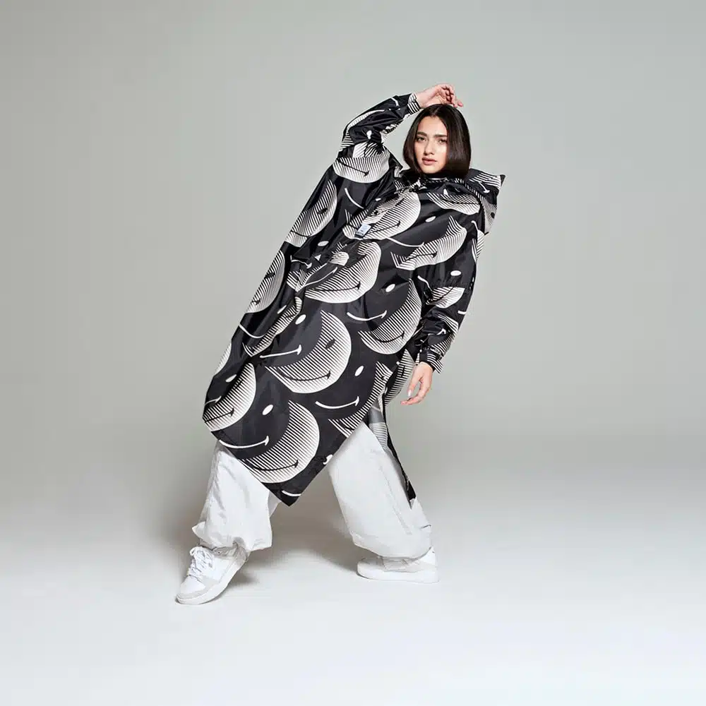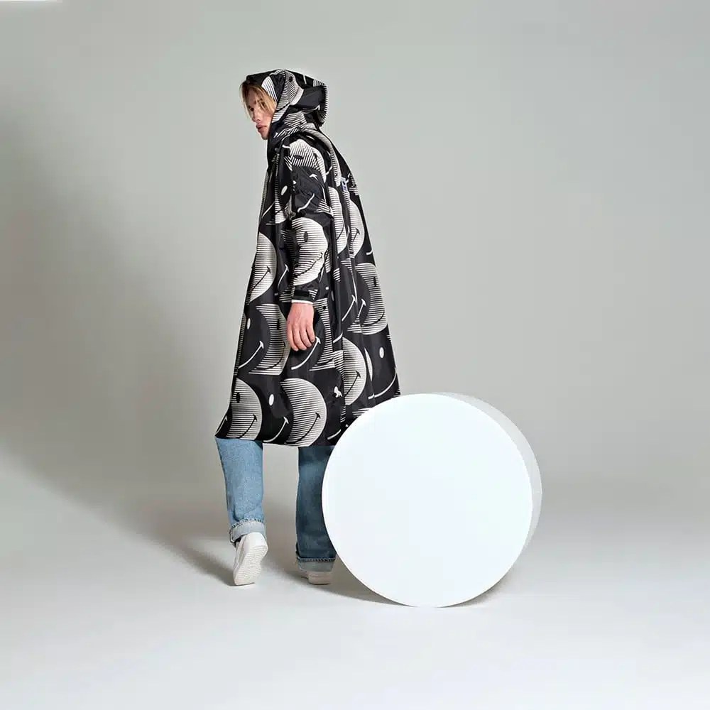 Omarm twee dingen tegelijkertijd; allure van elegantie en functionaliteit met onze Rainkiss Halve Maan Smiley Poncho in tijdloos zwart wit. Deze chique en leuke accessoire is gemaakt om je regenachtige kledingstijl  een oppepper te geven  en combineert mode naadloos met praktisch nut.