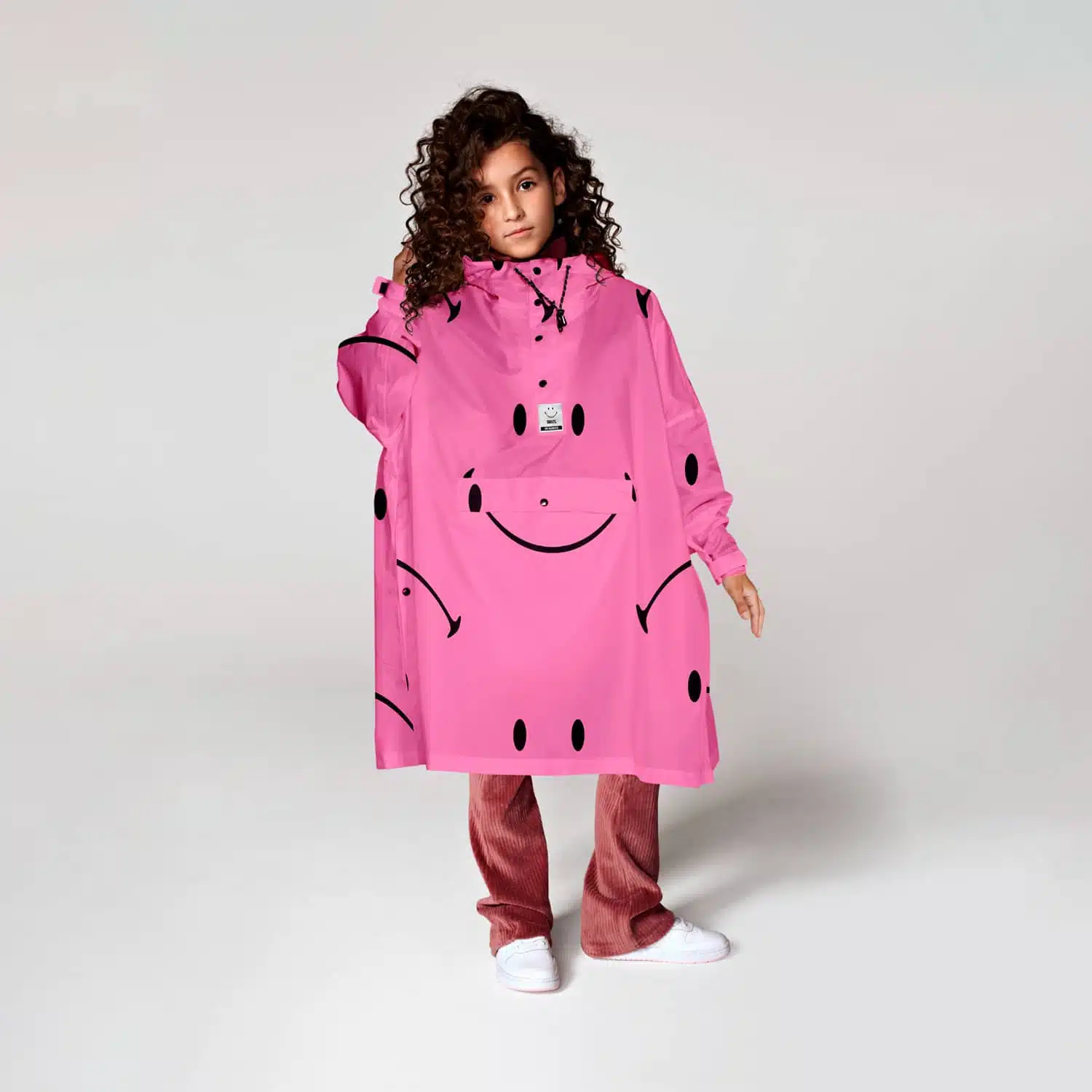Vrolijk regenachtige dagen op met de Rainkiss Roze Classic X Smiley voor kinderen in heerlijk fel roze! Deze poncho is gemaakt om de kleintjes droog te houden en is niet alleen praktisch, het is ook een bundel van vreugde deze poncho.