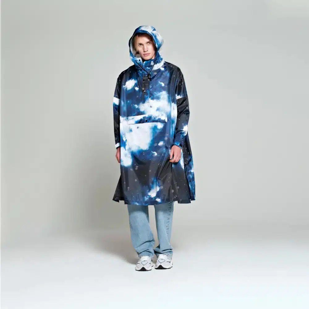 Stap zelfverzekerd, veilig en stijlvol de regen in, gehuld in de edgy allure van onze Rainkiss Starry Night Regenponcho in mooie blauw-, grijs- en wittinten. Dit is niet zomaar regenkleding – het is jouw statement en harnas tegen de elementen en je kunt ook nog eens veilig de weg op omdat het dus reflecterend is. Dus tegelijkertijd een geweldig hulpmiddel als je gaat fietsen of wandelen.