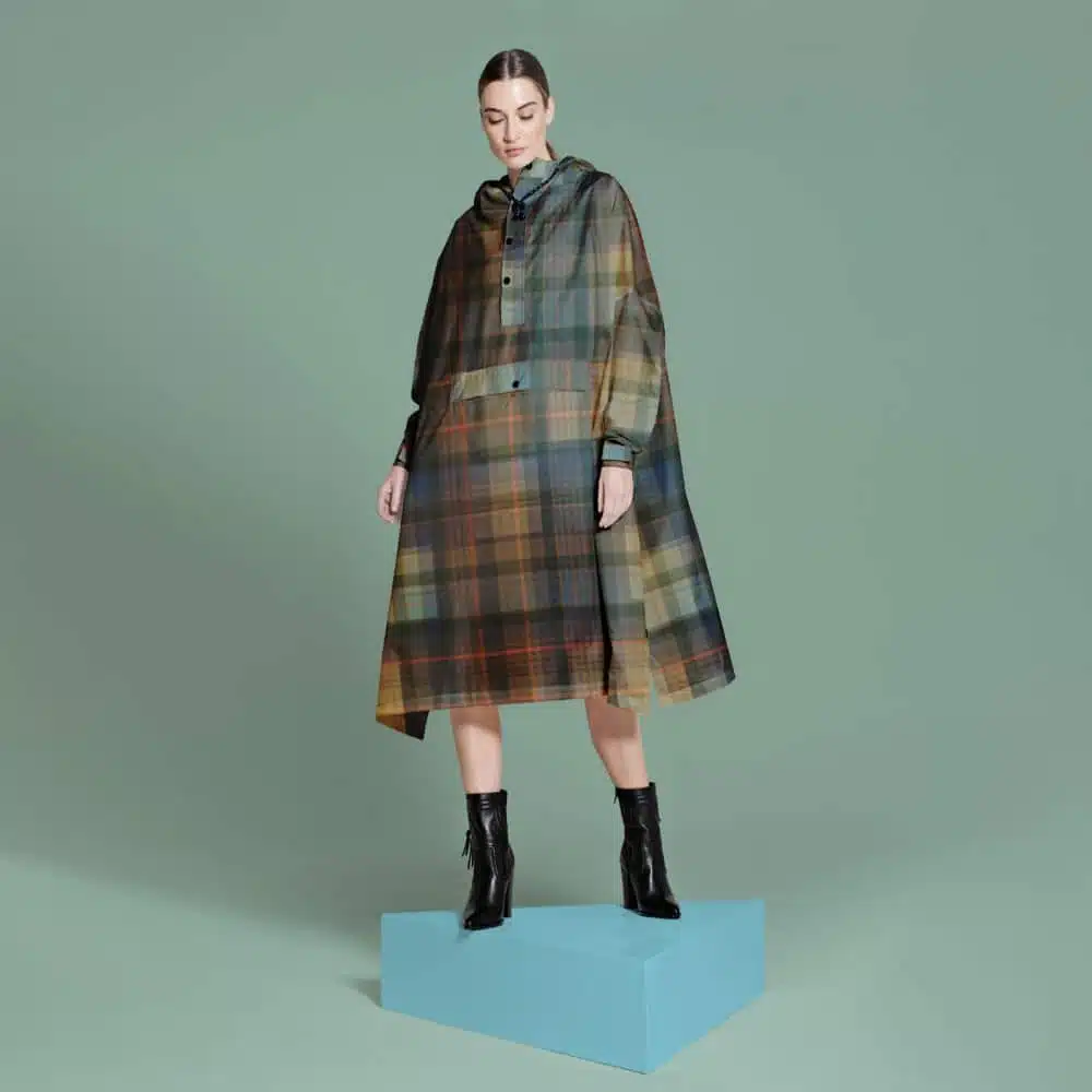 Regenponcho geïnspireerd op het beroemde schotse ruitjespatroon de Tartan Rainkiss Regenponcho. Je hoeft geen lid van een clan te zijn, je kunt deze poncho overal overheen dragen en je op een zeer modieuze manier beschermen tegen de regen.