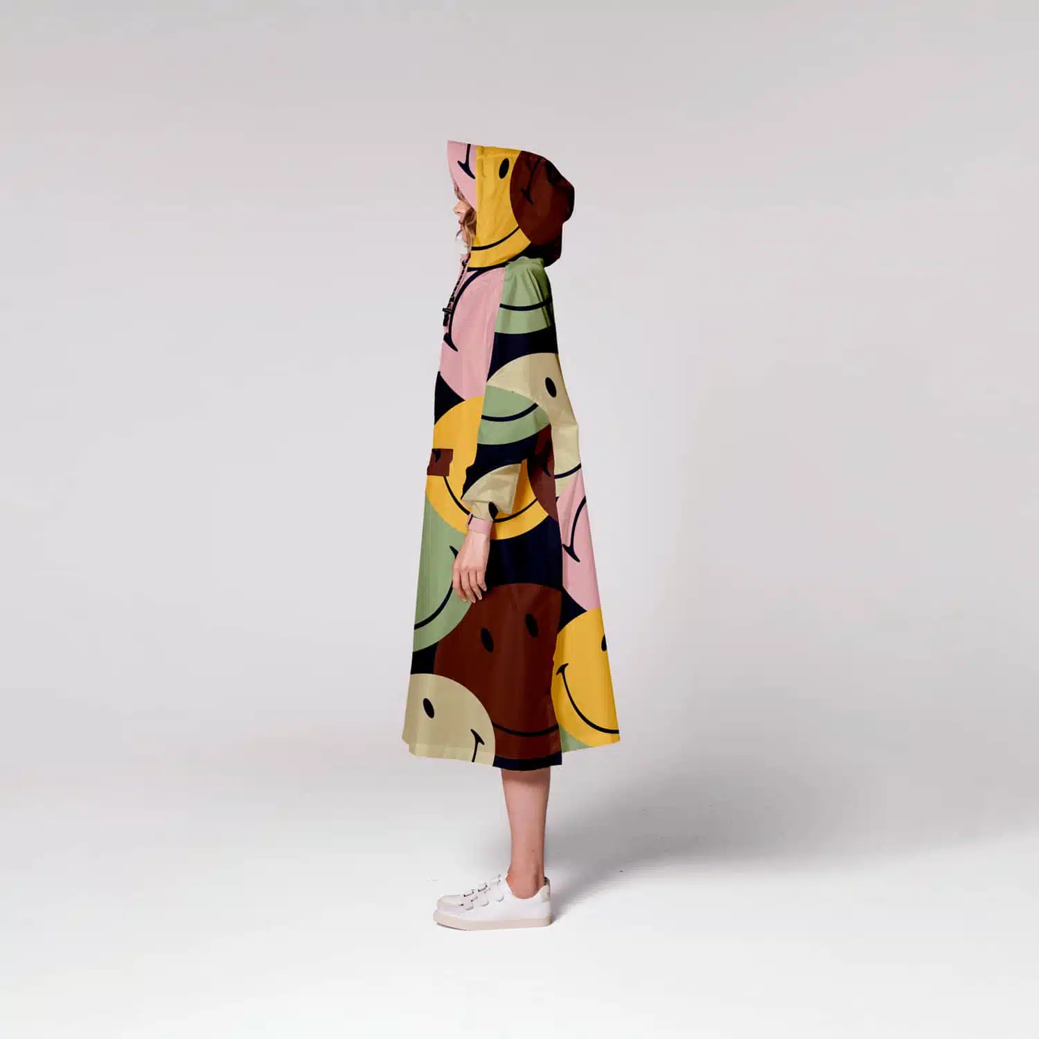 Deze poncho is gemaakt van duurzaam, waterbestendig materiaal en is je perfecte bondgenoot tegen onvoorspelbaar weer. Het levendige ontwerp, versierd met een overvloed aan kleurrijke smileys, is niet alleen een fashion statement maar ook een mood booster. Lichtgewicht en gemakkelijk opvouwbaar, ideaal voor onderweg, zodat je droog en stijlvol blijft, waar je ook bent.
