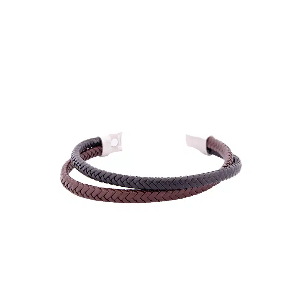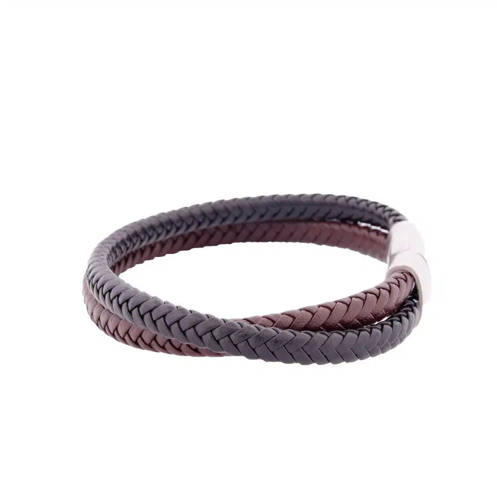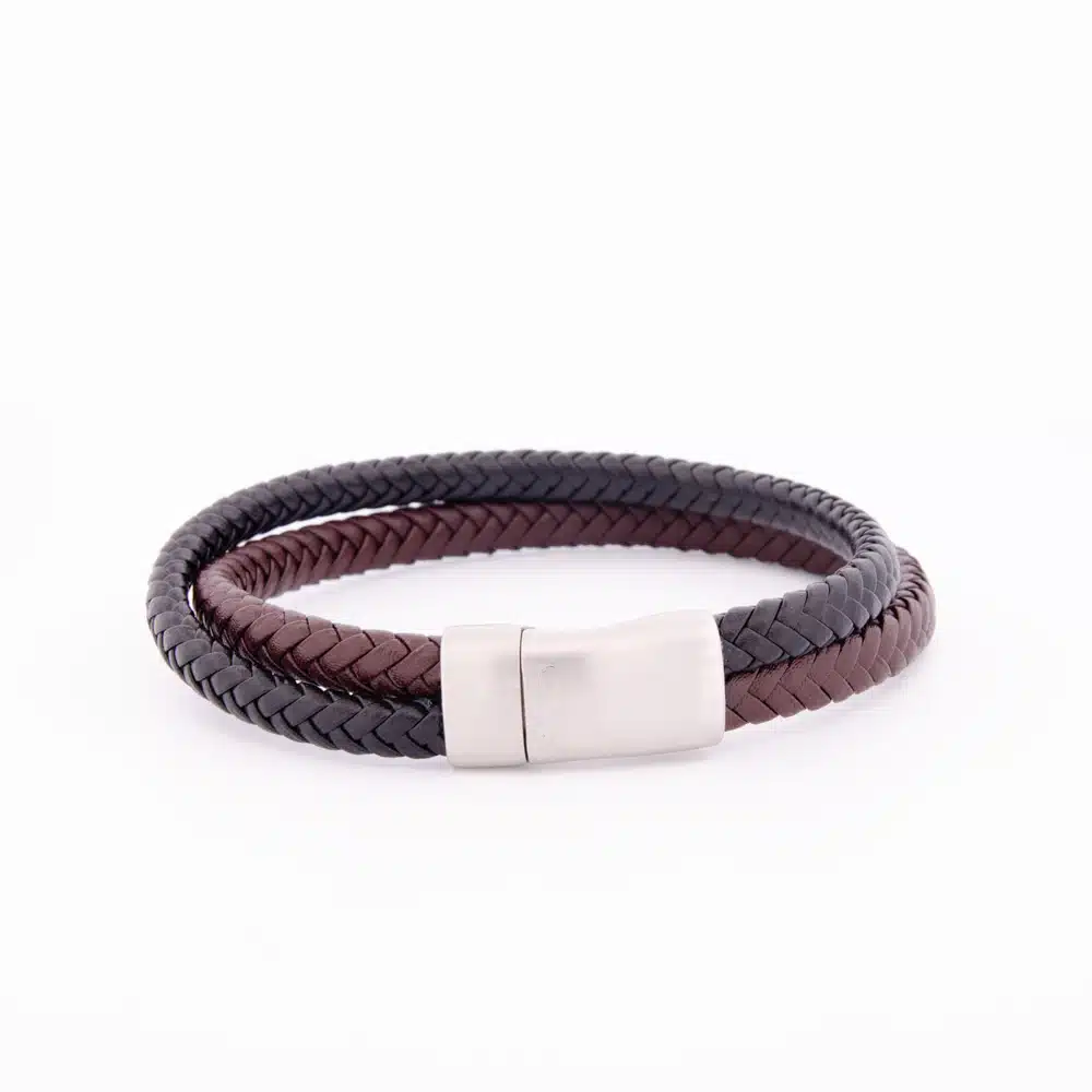 Het gevlochten leren ontwerp voegt een unieke textuur toe, waardoor de armband een opvallende, dynamische look krijgt die opvalt en toch een ingetogen elegantie behoudt. Het tweekleurenpalet maakt hem gemakkelijk te combineren met alles, van casual denim tot zakelijke kleding, waardoor het een echte go-to accessoire is voor elke stijlbewuste persoon. En dit voor mannen en vrouwen. Het kan gemakkelijk gedragen worden door beide waardoor het een perfect accessoire is om te “lenen”.