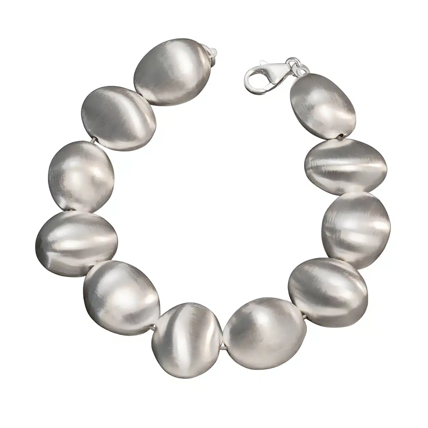 Of je je nu uitdost voor een avondje uit of iets subtiels zoekt om je alledaagse garderobe op te leuken, deze armband past naadloos in elke stijl. De mat zilveren steentjes bieden een moderne, gedempte glans die precies de juiste hoeveelheid licht weerkaatst en in het oog springt zonder te overheersen. In tegenstelling tot traditioneel gepolijst zilver dat vaak fel en glanzend is, geeft de matte afwerking van dit sieraad het een verfijnd, eigentijds randje dat actueel maar tijdloos aanvoelt.