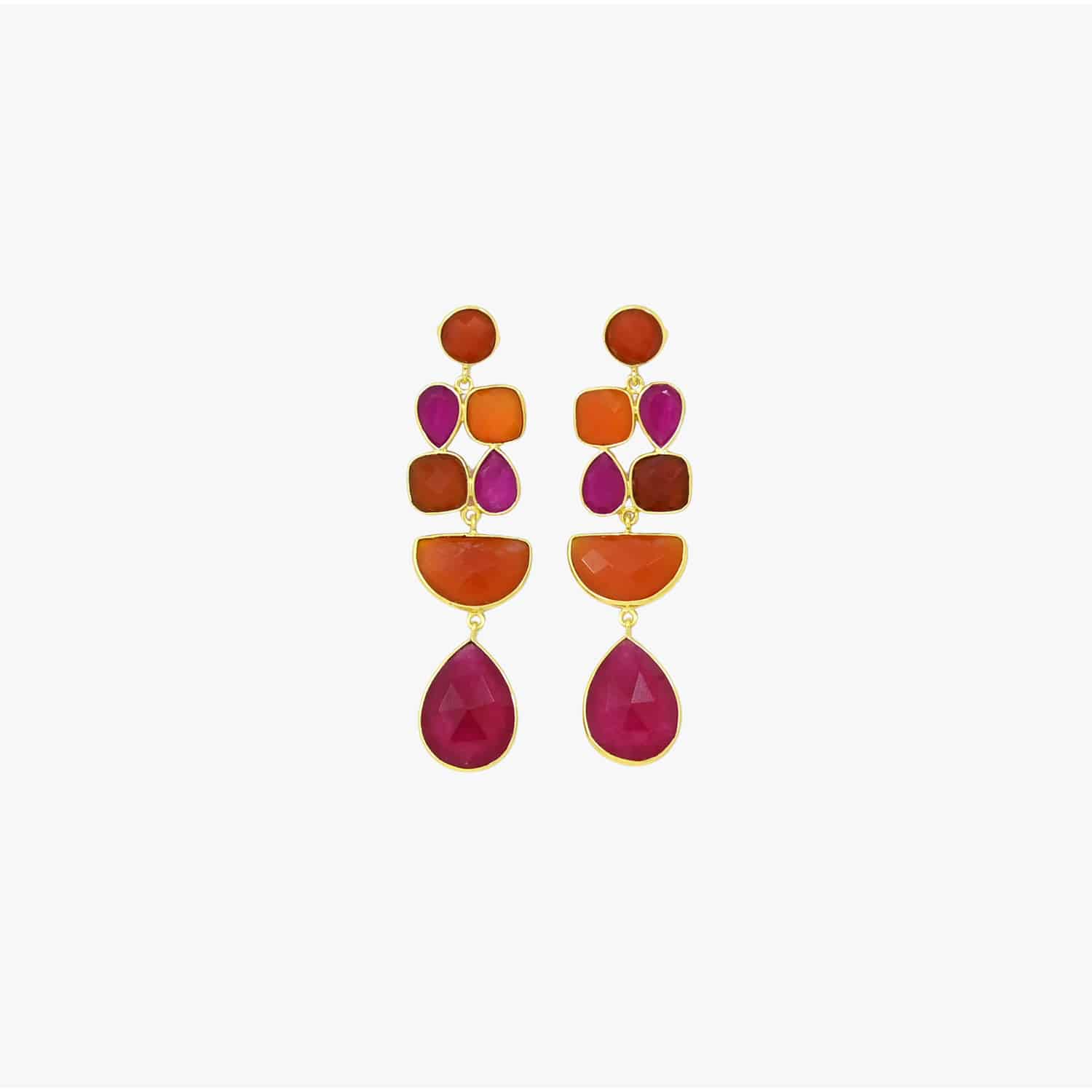 Sunset Muse Edelstenen Oorbellen met Jade, Onyx en Carneool