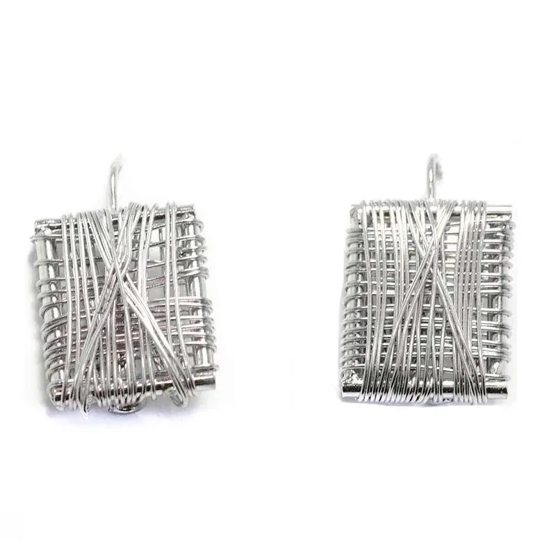 Leuke verzilverde draad oorbellen. Ze zijn bijna hetzelfde als de draad armbanden set. Precies hetzelfde design echter met het verschil dat deze oorbellen uit een enkel vierkantje bestaan. Maakt natuurlijk een leuke set met de armbanden set. Op deze manier kun lekker mixen en matchen. Of je kunt ze aan je dochter bijvoorbeeld geven of wat je natuurlijk maar wilt.