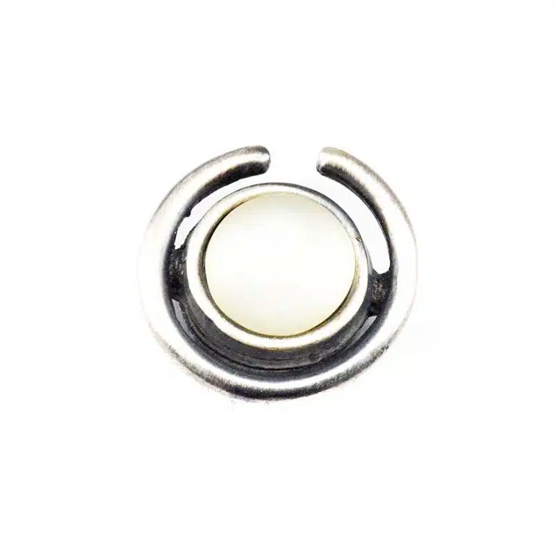 De vintage ring is heerlijk  om dagelijks te dragen, en zal je zeker elk outfit tot een hit maken. De witte steen is gemaakt van hars en heeft een ronde vorm.  Tot slot, om het helemaal af te maken, heeft Psychedelica de look van oud zilver, wat het een erg coole look geeft. Prachtige vintage look ring uit de flower power tijd.