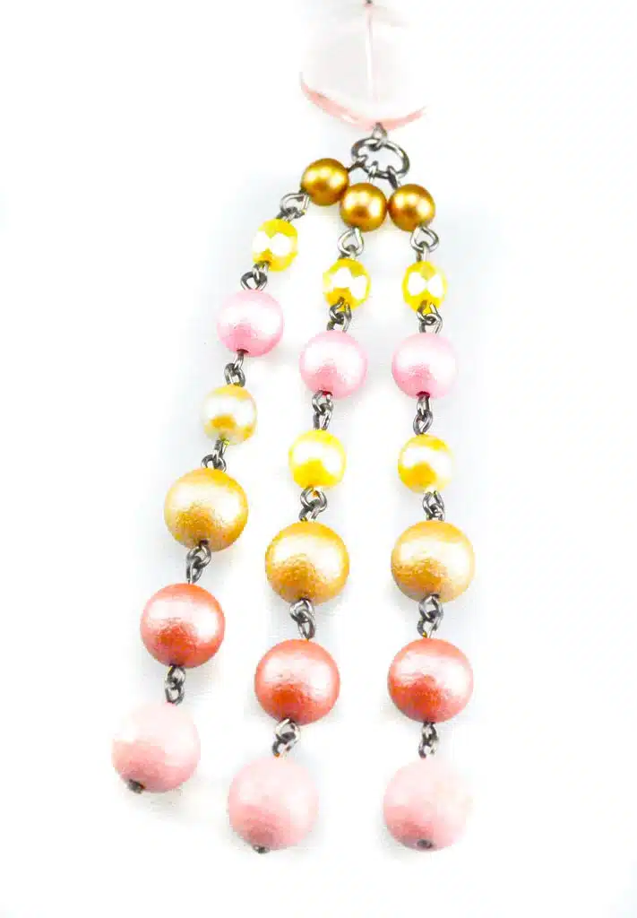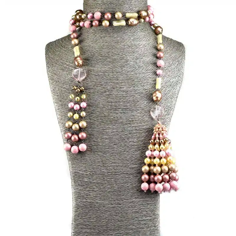 Kralen sieraden set met kwastjes is een mooie sieraden set voor dames. Â De sieraden set bestaat uit een lange ketting gemaakt van kralen in mooie roze tinten. Bij deze mooie kralen ketting krijg je oorbellen die te dragen zijn zonder gaatjes. Dat is natuurlijk weer mooi meegenomen. Want niet een ieder heeft gaatjes en om nu gaatjes te laten schieten is ook weer zo een ding.