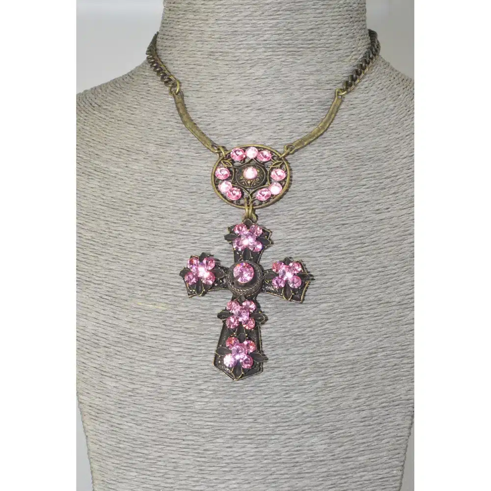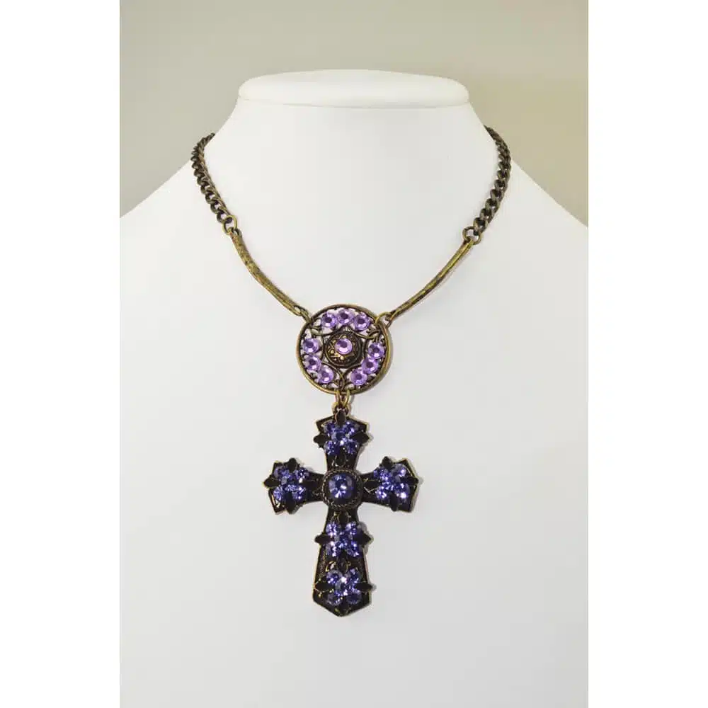 Prachtige sieradenset kruis bestaande uit een halsketting en oorknopjes. De ketting heeft een vorm van kruis. Het kruis is bezet met vele Swarovski kristallen in verschillende maten. Het is echt een oase van kristallen De oorknopjes passen perfect bij deze ketting in dezelfde kleur. De ketting heeft een brons/oud-goud uiterlijk. Daardoor krijgt deze ketting bijna iets middel-eeuws.